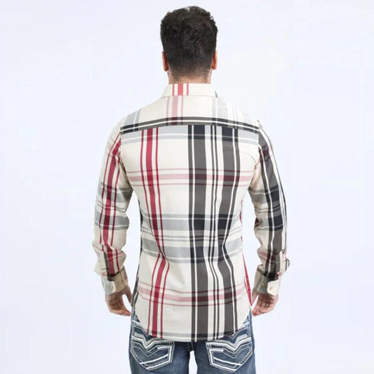 Mens Western Modern Fit Cotton/Spandex Long Sleeve Brown Shirt with Snaps