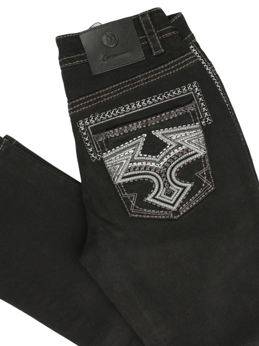 Centenario Men's Black Denim with Gray Embroidered Details 45311