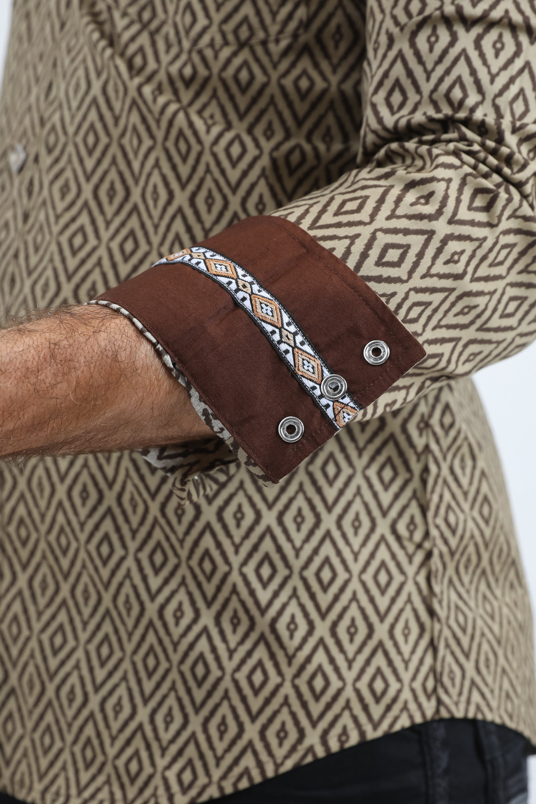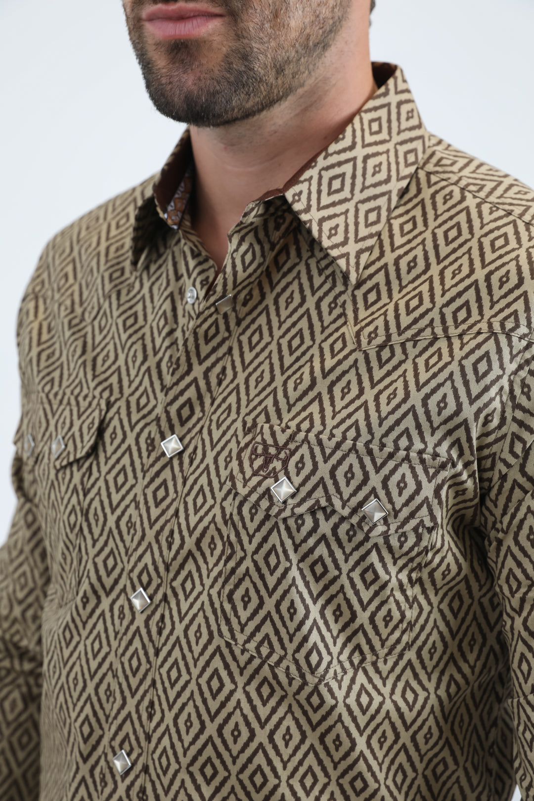 Mens Western Modern Fit Cotton/Spandex Long Sleeve Beige Shirt with Snaps